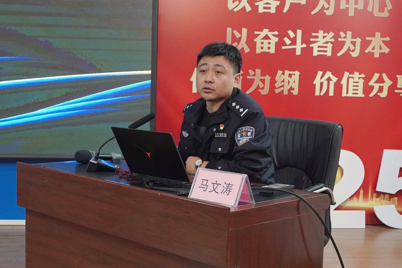 沈阳市公安局经济技术开发区分局民警马文涛,围绕《涉企经济犯罪预防宣传手册》核心内容,结合铝业集团多起盗窃案件的发生,马警官作为盗窃案件的经办民警着重强调了偷盗行为给公司及个人家庭带来的巨大伤害,并深入剖析合同诈骗、职务侵占等常见涉企经济犯罪的作案手法,传授识别与防范技巧,为企业财产安全筑牢“防火墙”。