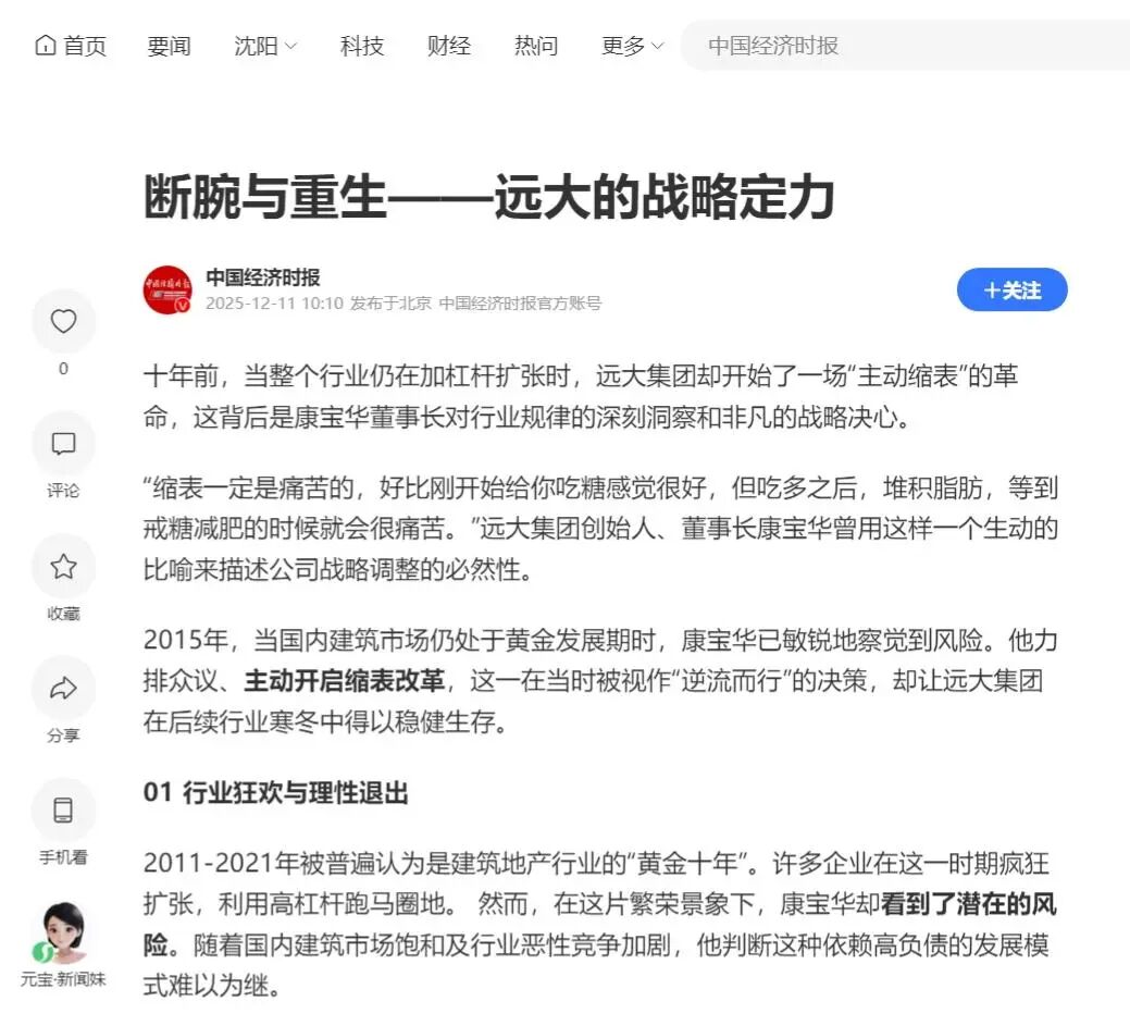 十年前,当整个行业仍在加杠杆扩张时,远大集团却开始了一场“主动缩表”的革命,这背后是康宝华董事长对行业规律的深刻洞察和非凡的战略决心。